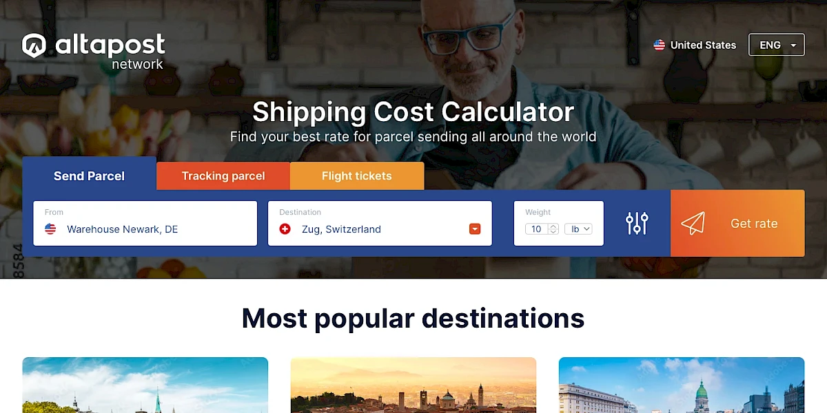 Why Choose Altapost: Simply enter your destination, weight, and parcel size to receive a list of the best shipping prices from different carriers. Compare options and choose what works best for your needs.
