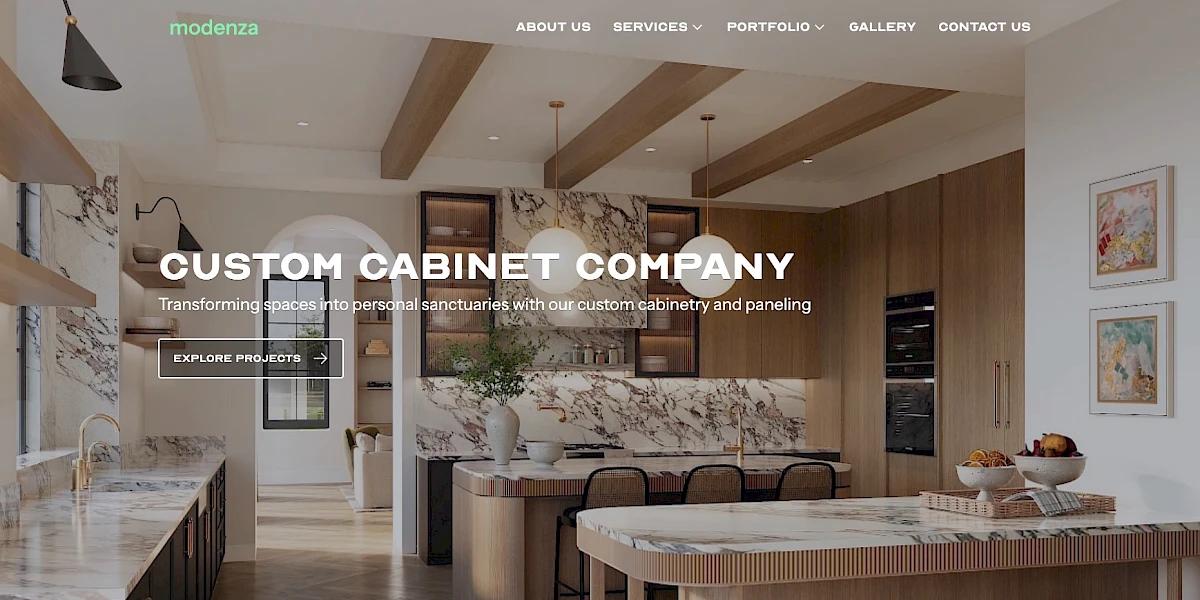 Modenza transforms houses into personal sanctuaries through thoughtful design services including custom-built homes, remodeling, and bespoke cabinetry with premium materials and unique architectural elements. The company follows a transparent, client-focused process that involves customers from start to finish, ensuring each project reflects the client's unique vision, needs, and lifestyle. With projects like the complete remodeling of "Bel Air Retreat," the "New Custom Kitchen" in Burbank Hills, and "Modern Oasis" featuring custom cabinetry throughout the house, Modenza demonstrates exceptional craftsmanship and personalized luxury tailored to each client's taste.